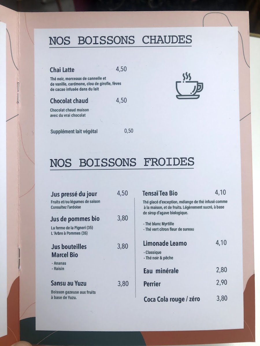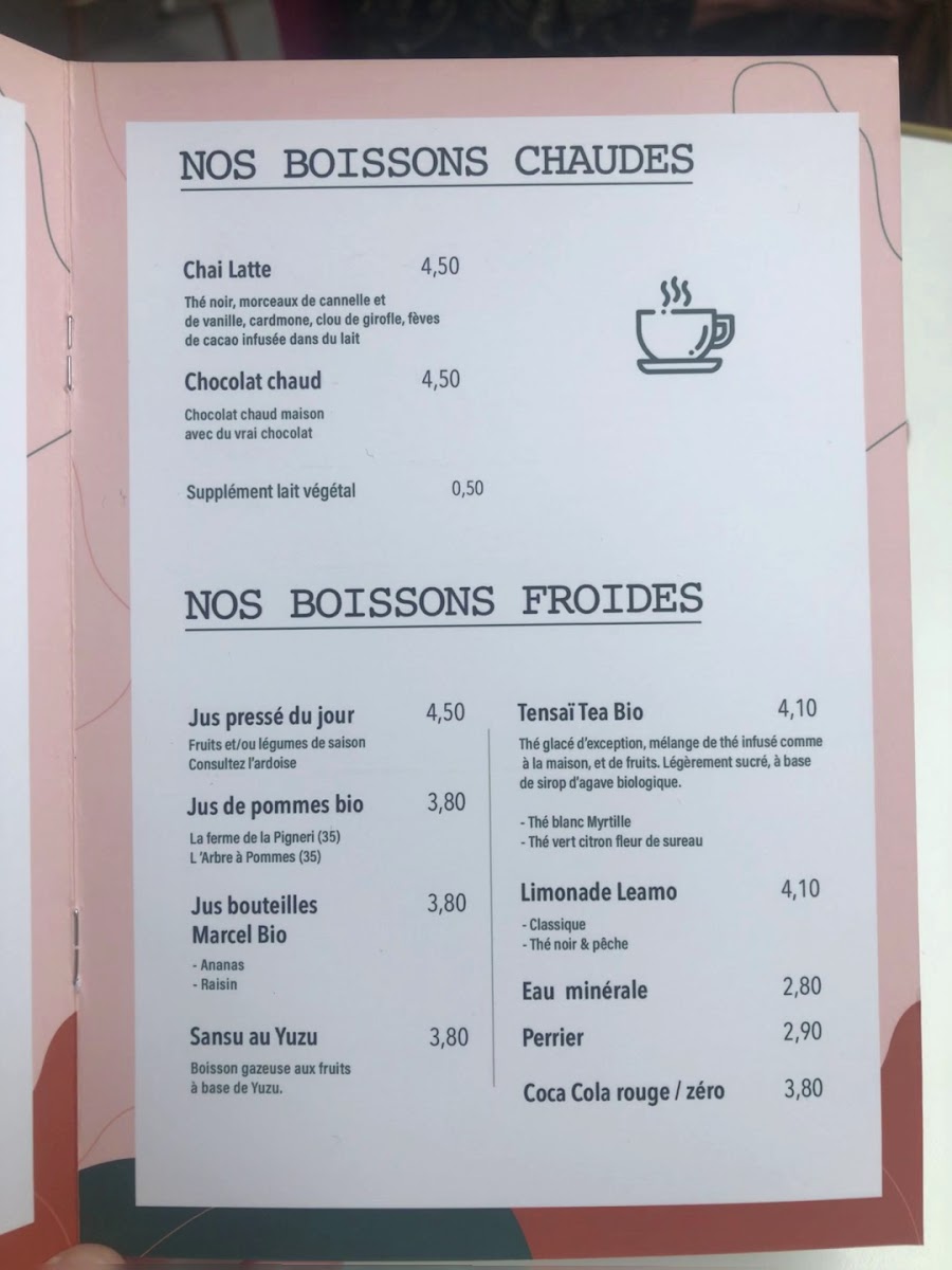 The menu at this café features a selection of coffee and tea beverages, including specialty drinks such as golden latte and chaï latte. The food offerings include light meals suitable for breakfast or lunch, with options such as granola bowls, savory pancakes, and nutrient-rich Buddha bowls. Patrons can also find a variety of pastries, cookies, and cakes to complement their hot drinks.